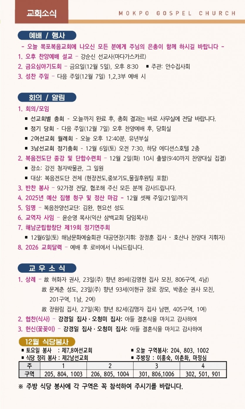 2025년 11월 30일 교회소식 > 공지사항